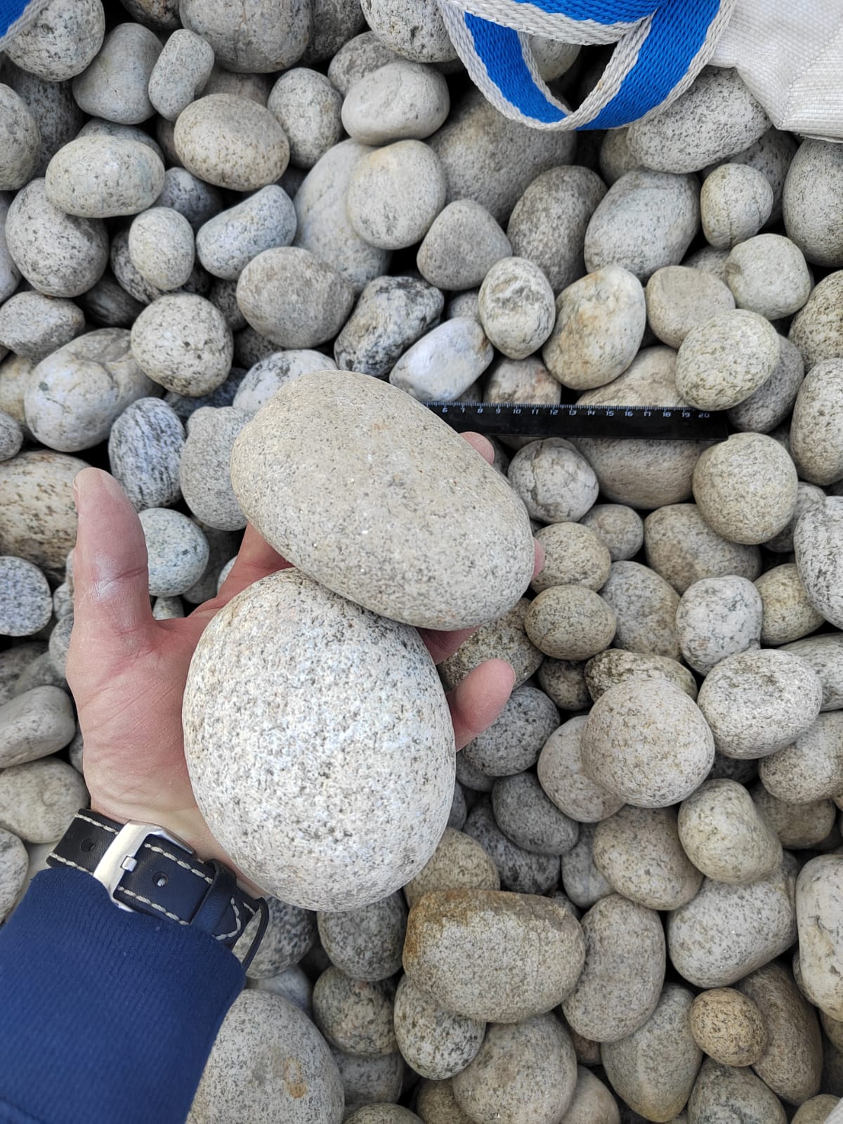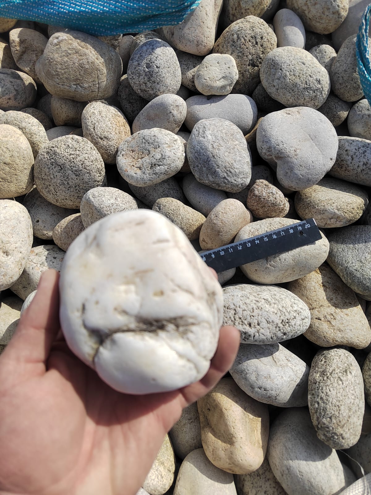 Галька горная речная окатанная (серо-белая, "страусиные яйца")